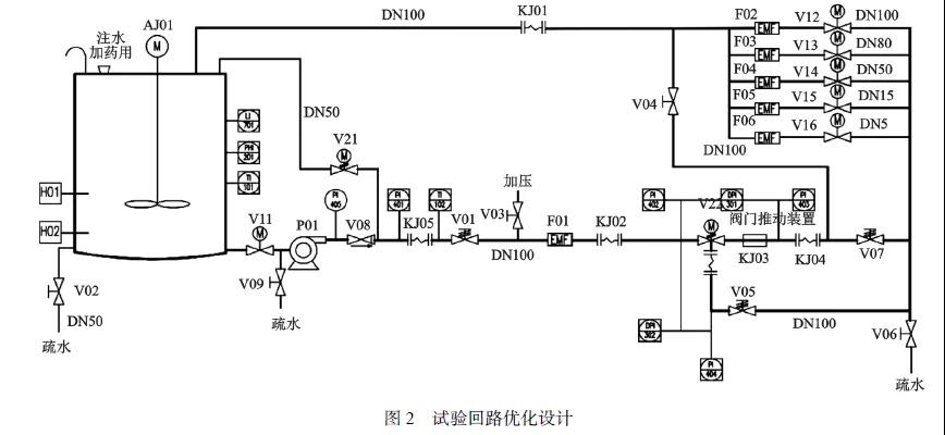 為實(shí)現(xiàn)閥門(mén)固體顆粒鑒定試驗(yàn)的要求,在滿(mǎn)足設(shè)計(jì)規(guī)范的前提下,對(duì)試驗(yàn)回路進(jìn)行了優(yōu)化設(shè)計(jì)。