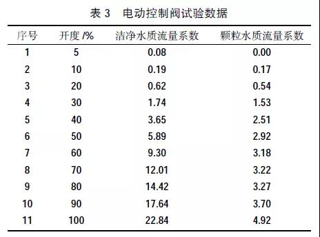 對(duì)照第3 次閥門(mén)(電動(dòng)控制閥)試驗(yàn)數(shù)據(jù),口徑為DN80,籠式多層次結(jié)構(gòu),試驗(yàn)數(shù)據(jù)見(jiàn)表3。試驗(yàn)流程與第2 次試驗(yàn)的流程一致。從其試驗(yàn)結(jié)果可以看出顆粒水介質(zhì)對(duì)于閥門(mén)的影響較大,這與閥瓣多層小孔結(jié)構(gòu)相關(guān)。